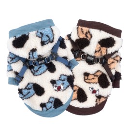 Felpa invernale con pettorina integrata, motivo cagnolini e tinta unita, torace regolabile con...