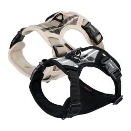 ...Pettorina modello A con motivo a zampa e bordi tinta unita Cintura toracica regolabile con...