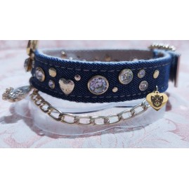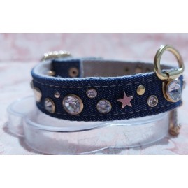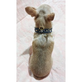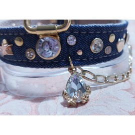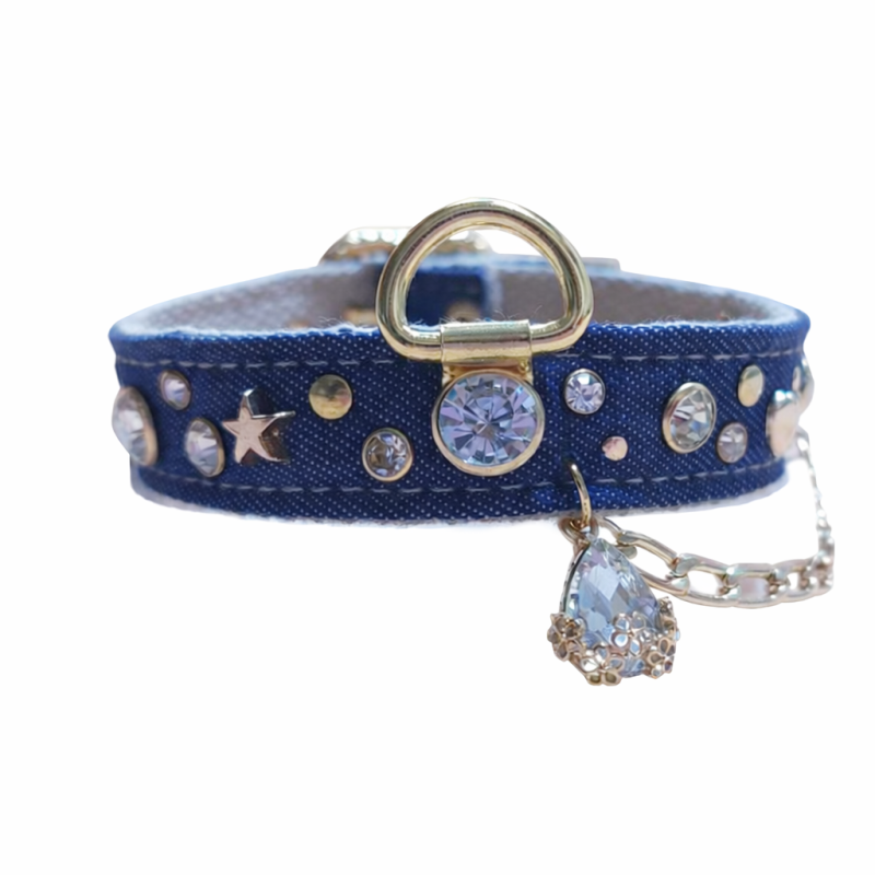 Eleva lo stile del tuo piccolo amico con l'esclusivo collare Starlight Denim, il perfetto connubio tra l’anima casual del jeans e il lussuoso scintillio dei cristalli. Realizzato artigianalmente per chi non vuole passare inosservato, questo accessorio trasforma ogni passeggiata in una sfilata di moda.