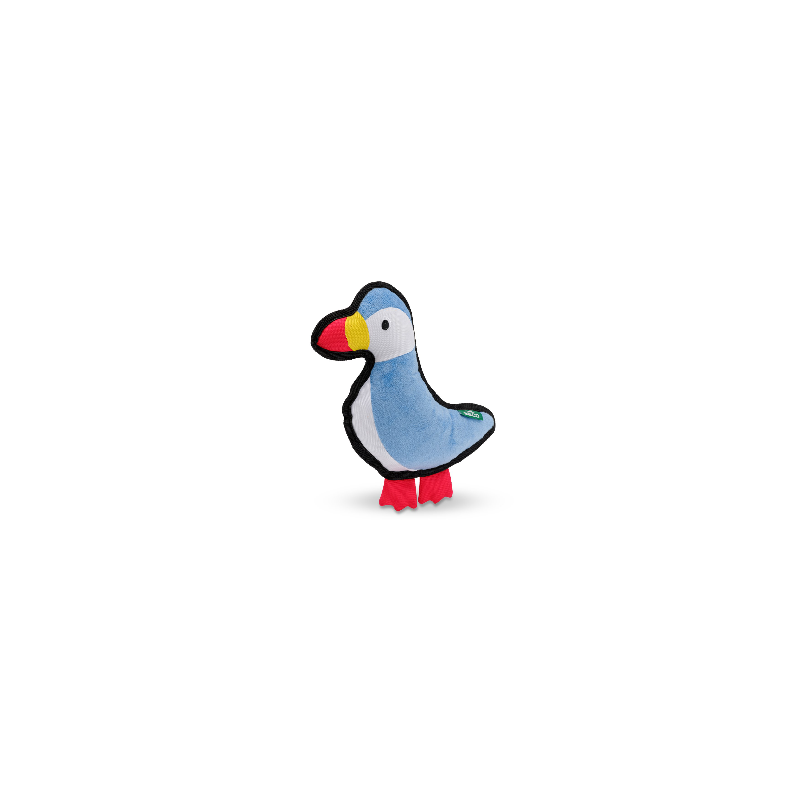 Gioco in peluche imbottito con tessuto e imbottitura realizzati con bottiglie di plastica riciclate. Cuciture rinforzate
