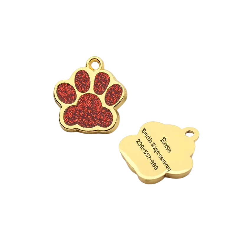 Medaglietta, color oro con interno glitterato, ideale da appendere al collare o pettorina del tuo cane o gatto. Personalizzabile con il tuo numero di telefono ed il nome del tuo cane.