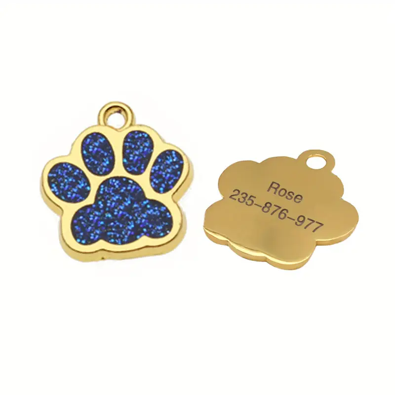Medaglietta, color oro con interno glitterato, ideale da appendere al collare o pettorina del tuo cane o gatto. Personalizzabile con il tuo numero di telefono ed il nome del tuo cane.