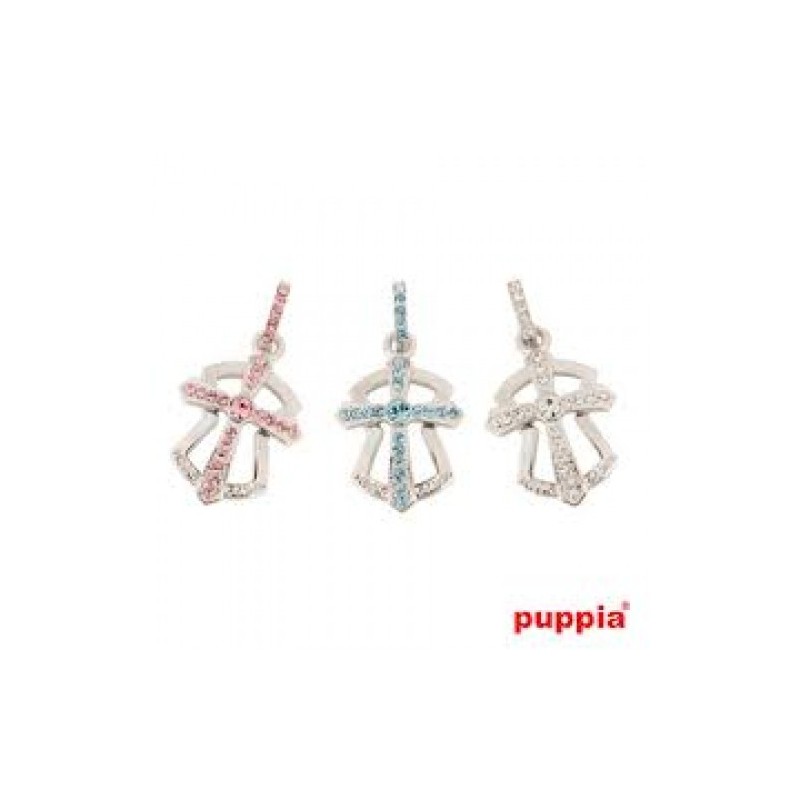 Bellissimo charm Puppia argentato arricchito con cristalli, ideale da appendere a un collare...