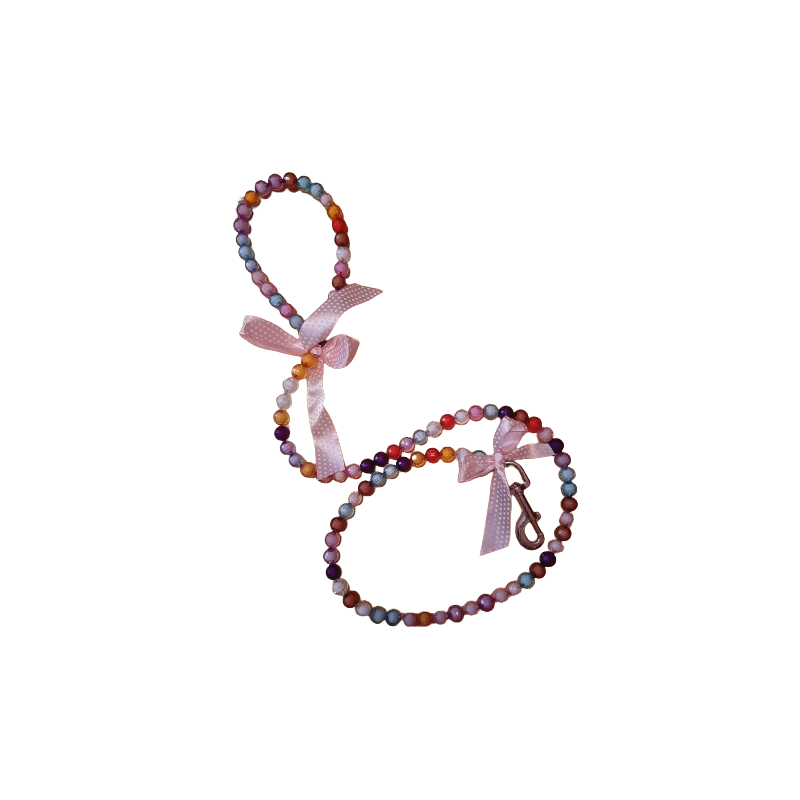 Elegante guinzaglio con perle colorate in plastica. Il corpo del guinzaglio è realizzato in acciaio.