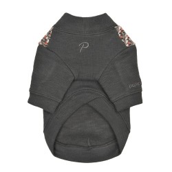Maglietta con cappuccio, motivo puzzle e tinta unita, con foro per uscita guinzaglio