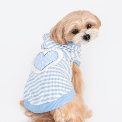 Maglietta con cappuccio, motivo puzzle e tinta unita, con foro per uscita guinzaglio