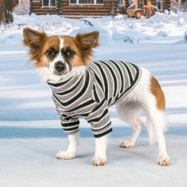 Maglia a collo alto invernale, motivo a righe e tinta unita, dotato di foro per uscita guinzaglio
