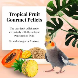 L’unico pellet di frutta realizzato esclusivamente con la dolcezza naturale della frutta, senza zuccheri o fruttosio aggiunti. I pellet gourmet alla frutta tropicale per parrocchetti portano le papille gustative del tuo uccello ai tropici!
