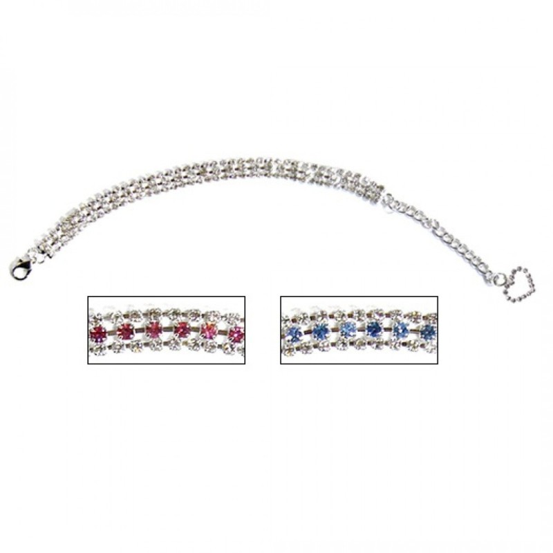 Luccicante collana di cristallo su 3 file che sicuramente darà lusso e glamour per tutte le occasioni al vostro piccolo amico. Con estensione di 2 “”(5,2 cm) e con incluso un ciondolo charm a cuore carinissimo. Il vostro cane sembrerà una vera star!