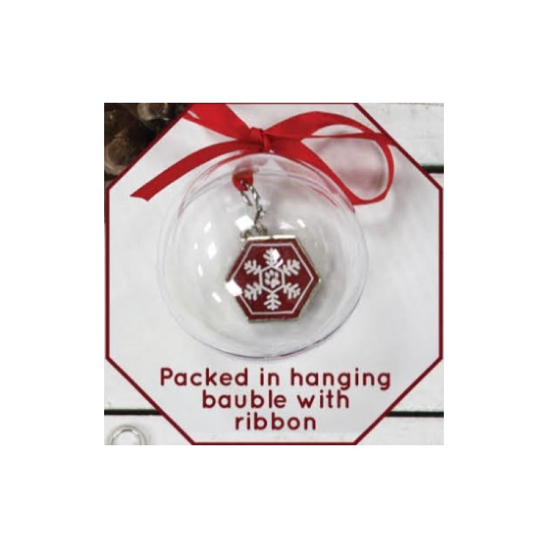 Medaglietta in simpatica confezione con pallina trasparente da appendere all’albero, ideale da incidere. Lungh. 7cm ca,