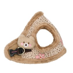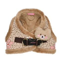 Pettorina invernale modello B sicura e alla moda, motivo floreale e tinta unita, chiusure a strappo su collo e petto, decorata con simpatico orsetto di peluche sul dorso