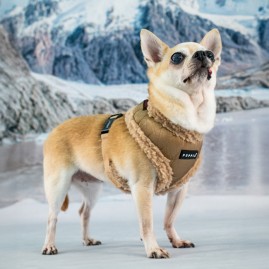 Pettorina modello A sicura e alla moda, in pile, da indossare sopra la testa, tinta unita, cintura pettorale regolabile con fibbia