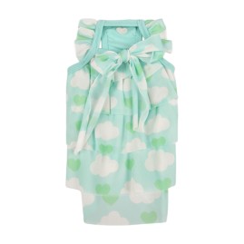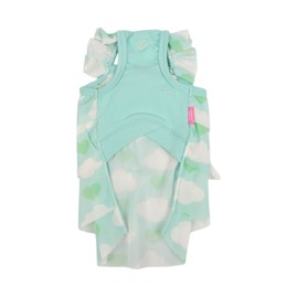 Abito intero, motivo a nuvole e tinta unita, decorato con fiocco sul collo