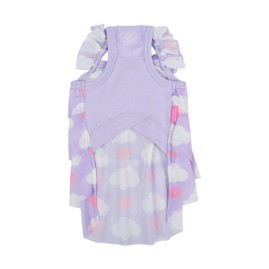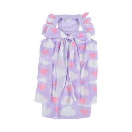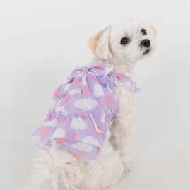 Abito intero, motivo a nuvole e tinta unita, decorato con fiocco sul collo