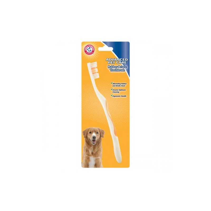 Spazzolino da denti dalle setole in gomma che è stato specificatamente progettato per pulire in profondità i denti del vostro cane e lungo il bordo gengivale.