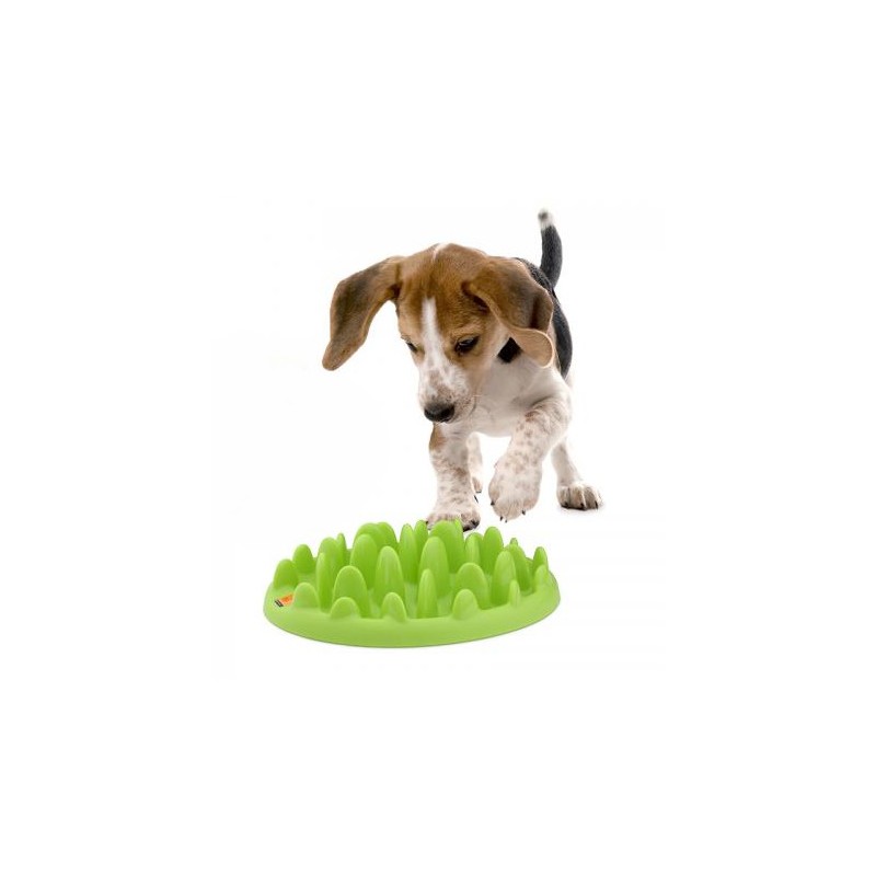 cane in un gioco impegnativo. Molti cani richiedono stimolazione mentale costante, altrimenti possono annoiarsi e questo può portare a comportamenti indesiderati, come la masticazione inappropriata o l’abbaiare. Questa è la soluzione ideale in quanto consentirà ai padroni di usare il cibo del loro cane per stimolare i loro istinti naturali, mantenendoli felici, sani e divertiti. Tutto quello che I padroni devono fare è versare la quantità desiderata di cibo nel Green e guardare il cane ‘lavorare’ per spingere il cibo fuori dai fili d’erba. Questo prodotto rallenta anche il tempo del mangiare, il che riduce significativamente il rischio di vomito, conati di vomito, gas e rutti e diminuisce anche il rischio di `gonfiare ‘una malattia potenzialmente mortale per i cani. Questa versione del prodotto è ideale per cani di piccola taglia e cuccioli. È fatto di plastica dura resistente (senza ftalati), può quindi essere utilizzato sia all’interno che fuori e anche in lavastoviglie.
