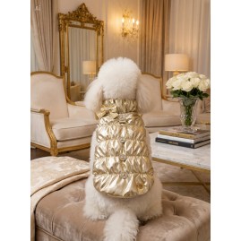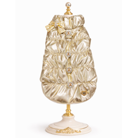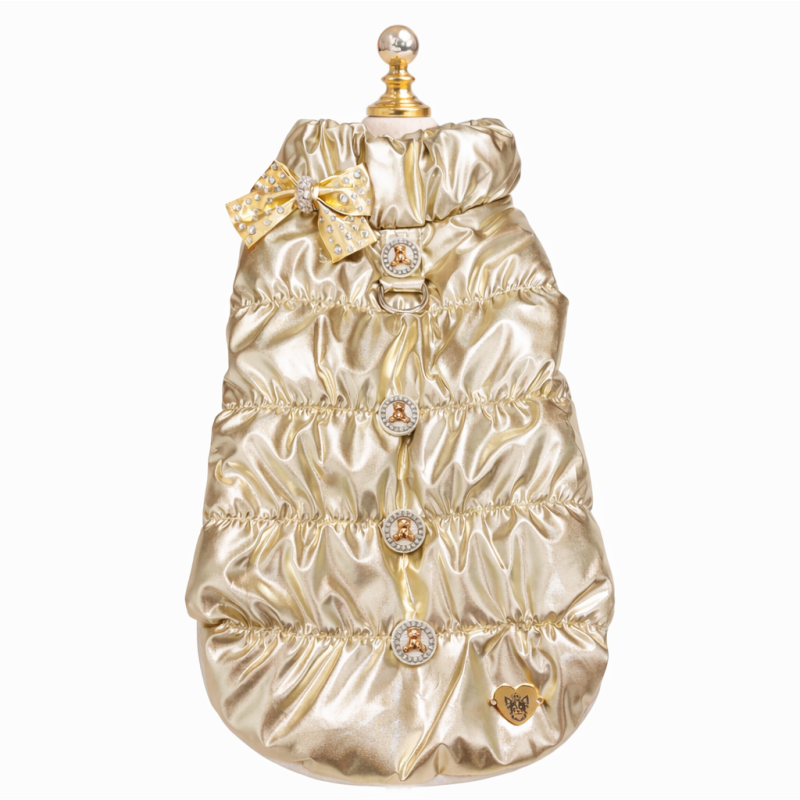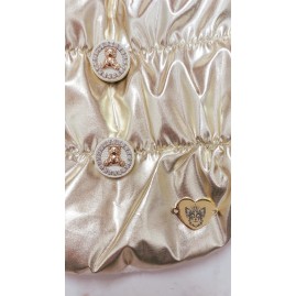 Piumino morbidissimo con fiocco adornato da cristalli e bottoncini con orsetti. L'interno è foderato in pile color crema
